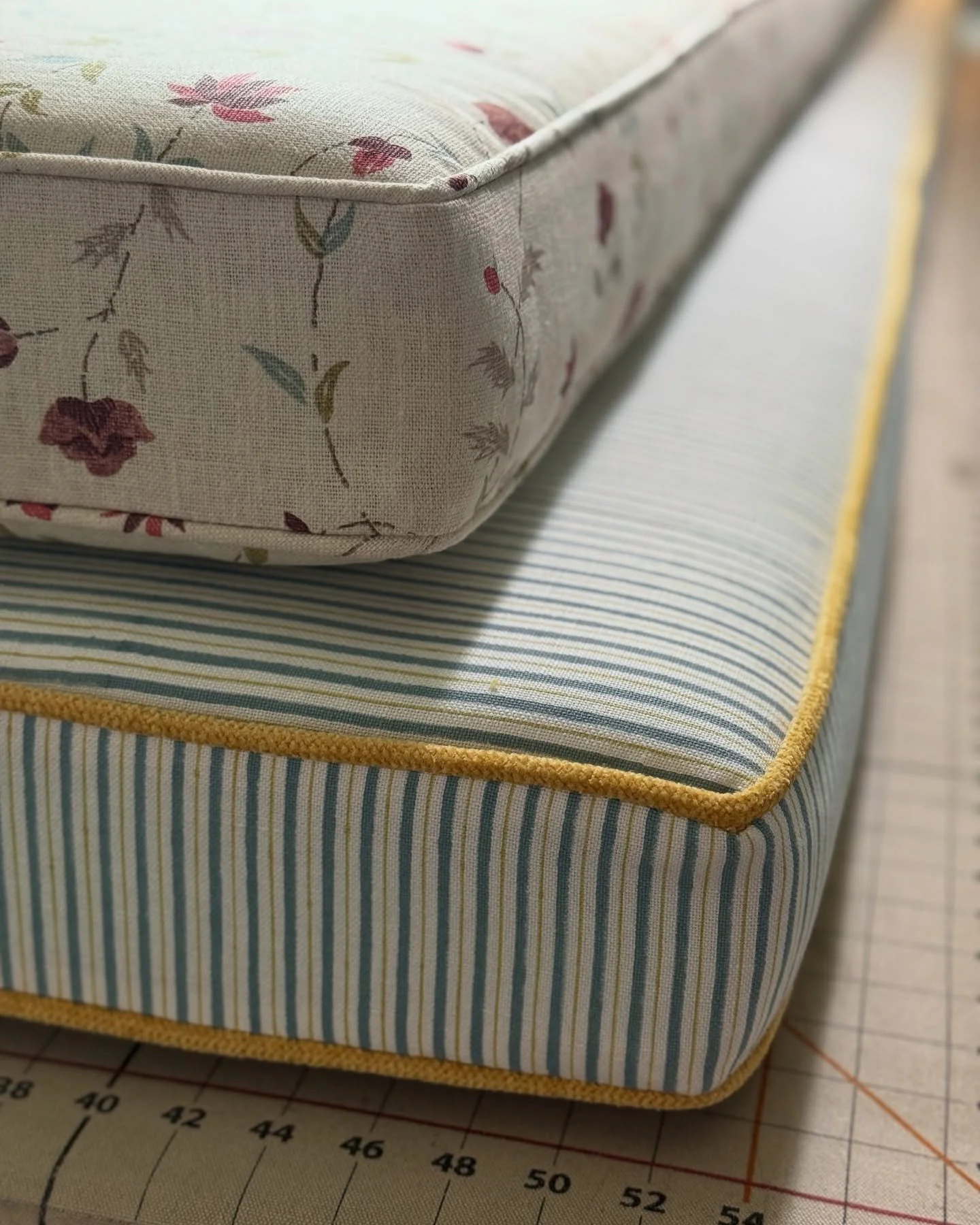 This project consisted of two banquette seats over 100"W.  We collaborated with the interior designer, architect and general contractor for fabrication and installation.  Our process started with an estimate from architectural drawings, onsite meeting with GC, site measurement upon substantial site completion with email communication of timelines and scheduling through out the process.