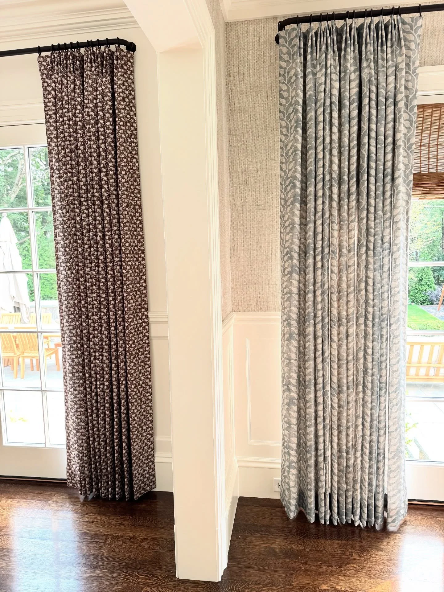Very specific requirements are the norm on ripplefold drapery projects.  This project began with a designer visit to our studio to select fabric options for an in-home design consultation with the client.  During our consultation visit both the client and designer were able to express ideas about the design.  We listened, made recommendations, took detailed measurements and lots of photos.  The end result is a drapery that fits perfectly and functions as expected by the designer/client.